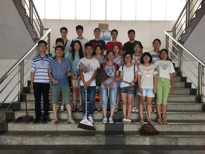 第四、第五学生党支部新发展预备党员对第八教学楼的一楼教室进行了义务清扫。