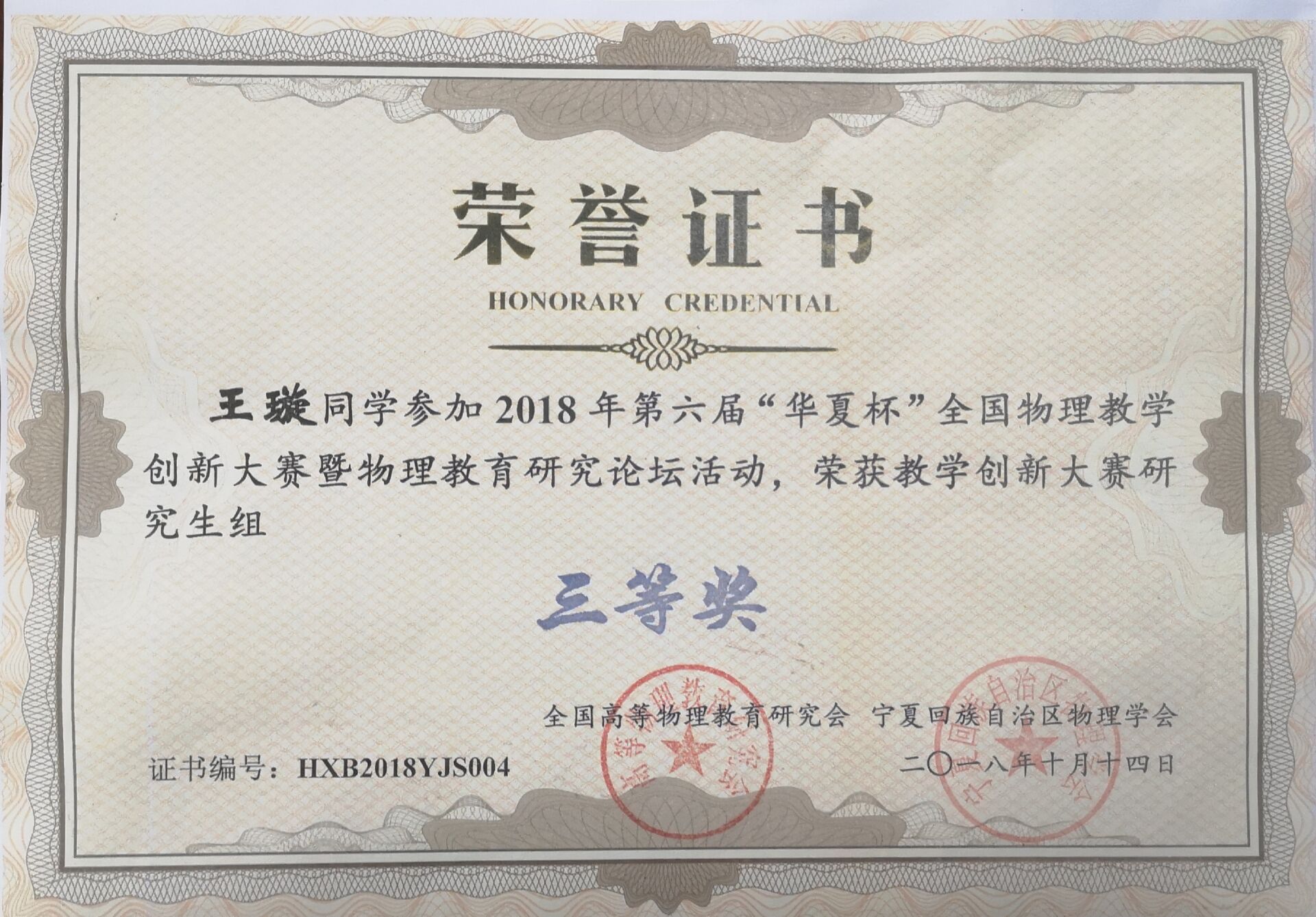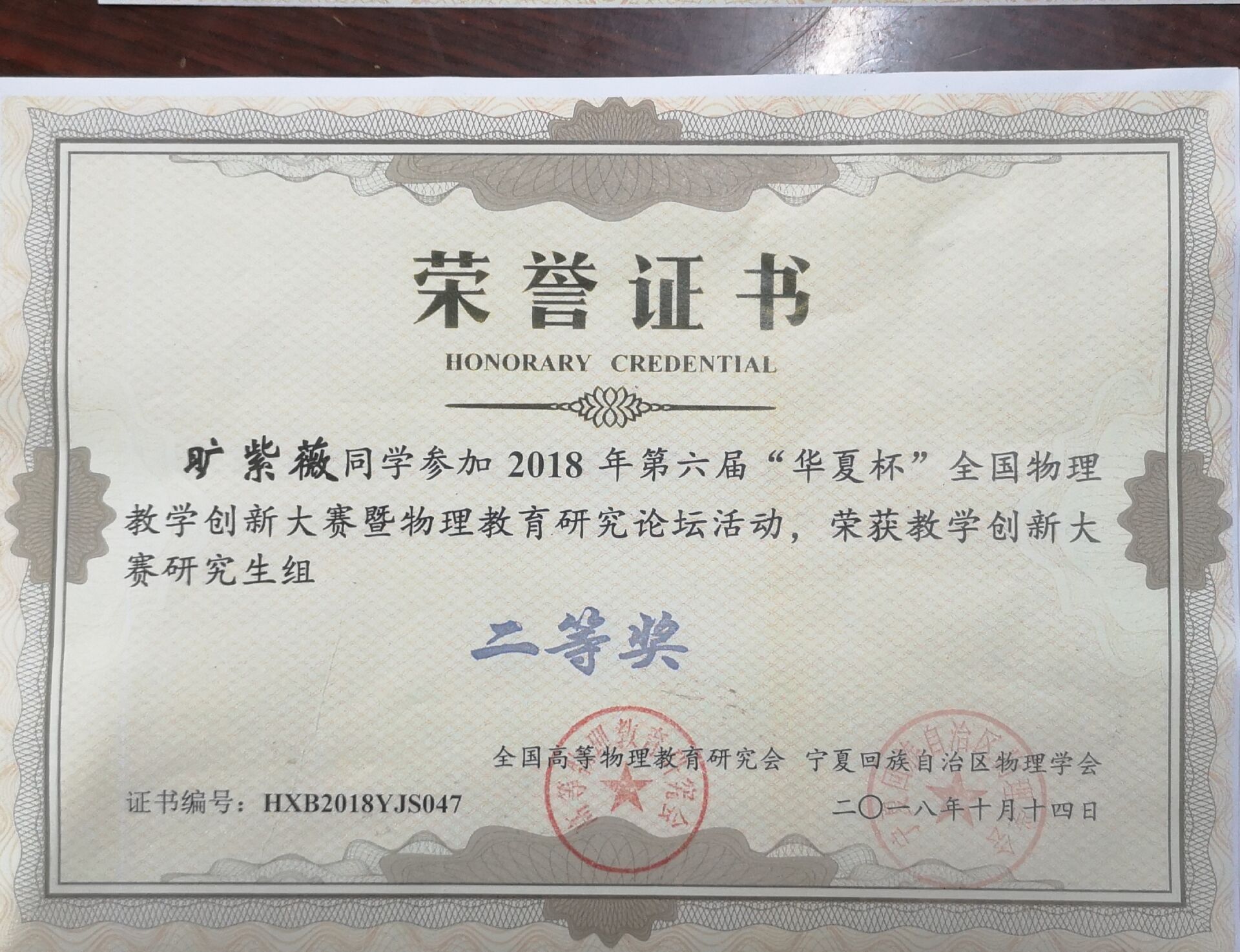 2018年10月13日至14日,由全国高等物理教育研究会主办、宁夏大学承办、宁夏回族自治区物理学会协办的第六届“华夏杯”全国物理教学创新大赛暨物理教育研究论坛在宁夏银川举行。来自全国28省市、108所院校共计487位选手参加了本次创新大赛。