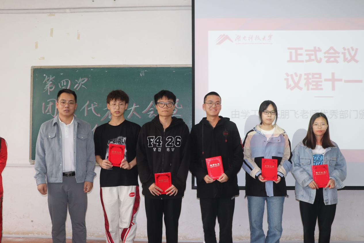 ▲学工办主任任朋飞为优秀部门颁发荣誉证书