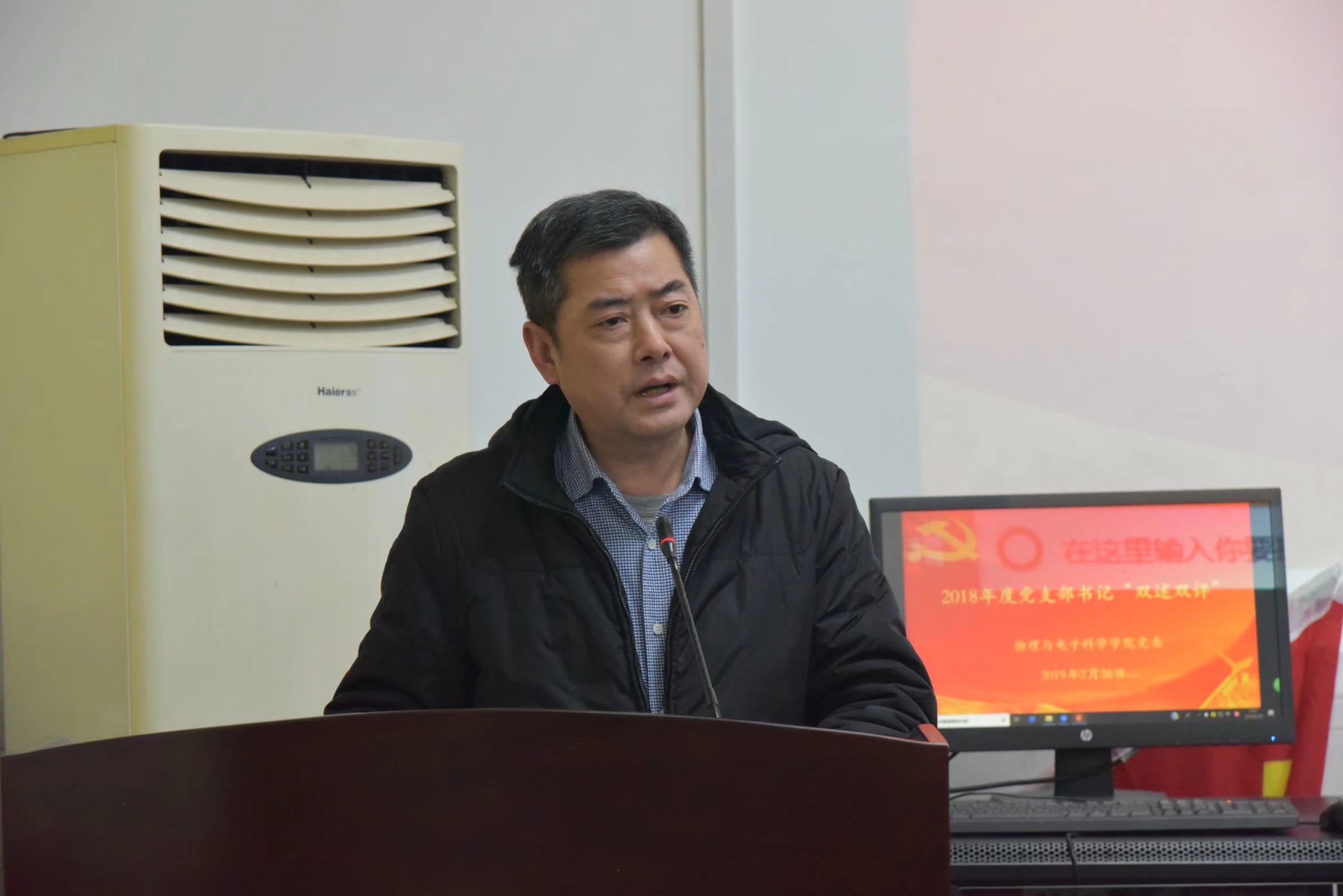 党委于2019年2月26日下午在物理楼二楼会议室召开党支部书记“双述双评”测评大会。副校长廖湘岳、校宣传部副部长廖志鹏莅临指导并讲话。院党委书记周文革、执行院长王俊年、副院长詹杰、党委副书记杜鑫、副院长刘明伟出席此次会议。院党委委员、党支部书记以及部分教师和学生党员代表参加了大会。