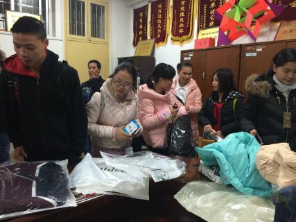 分管学生资助工作的张华老师亲自为他们发放棉衣,并热心地为同学们挑选尺寸合适的衣服。整个发放活动同学们都积极配合,工作有序进行,人心和衣物带来的温暖注进了同学们的心窝,同学们的脸上都绽放出一朵朵灿烂的红花。在签字确认后,同学们还穿着新衣进行了拍照留念。最后,本次活动在师生们的满面笑容的合影下圆满落幕。