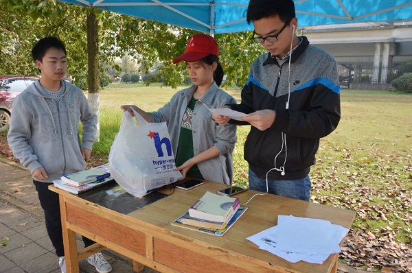 在学生宿舍七区门口开展了以“捐一本书籍,献一份爱心”为主题的为期一天的回收旧书活动。此次活动由360足球直播吧