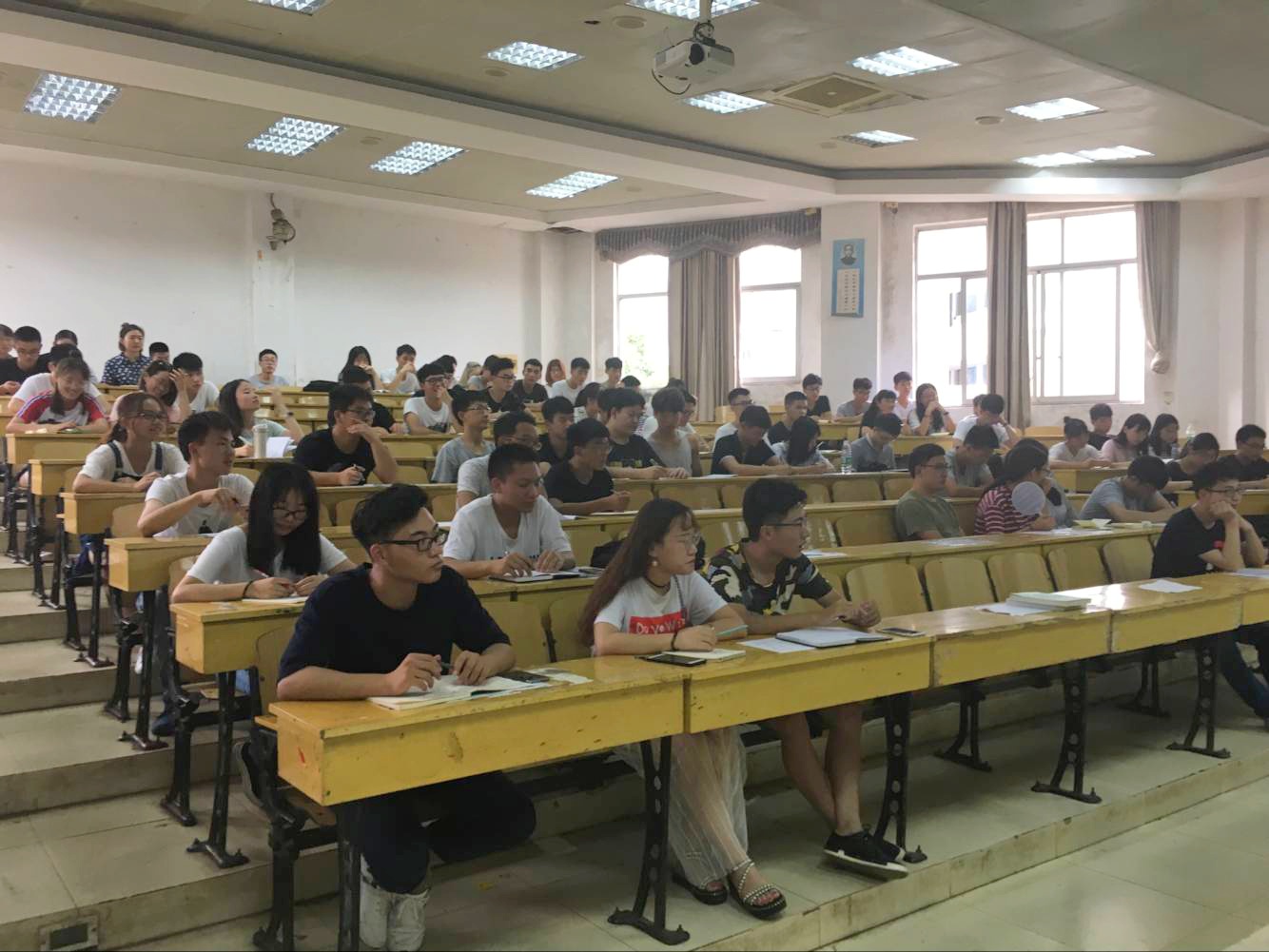 的学生干部们听得十分认真,不时在笔记本上作记录。