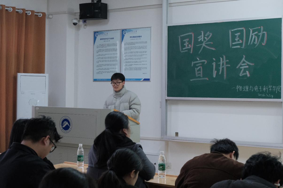 本次宣讲会以“星光引航·未来共创”为主题,邀请23级电子2班陈晨旭、23级集成1班杨鹏、24级集成3班程继贤等三位优秀获奖学子分享经验。分享环节中,三位主讲人各有侧重、倾囊相授。陈晨旭分享高效学习与时间管理方法,结合科研竞赛经历讲解国奖申请要点及学业实践平衡技巧;杨鹏围绕专业学习与竞赛突破,详解备赛策略与项目经验,助力学弟学妹明确目标;程继贤讲述逆境求学故事,解读国励申请细节,传递自立自强的奋斗精神。